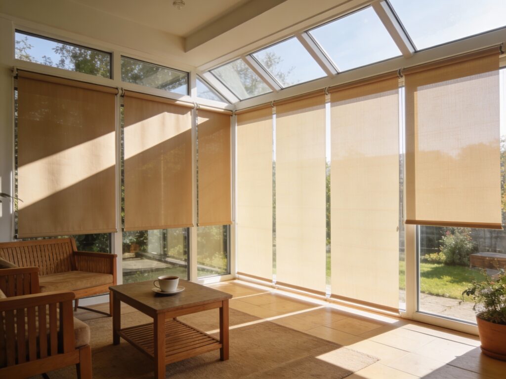 Ihre besonderen Stärken entfalten Vertikalmarkisen dort, wo herkömmliche Systeme an Grenzen stoßen: Bei großflächigen Glasfronten, Wintergärten oder bodentiefen Fenstern bieten sie effektiven Sonnenschutz ohne die Sicht komplett zu versperren. Durch ihre vertikale Ausrichtung sind sie windunempfindlicher als auskragende Systeme und eignen sich gut für exponierte Lagen. Architektonisch fügen sie sich besonders dezent ein, da sie parallel zur Fassade verlaufen und nicht vorstehen.